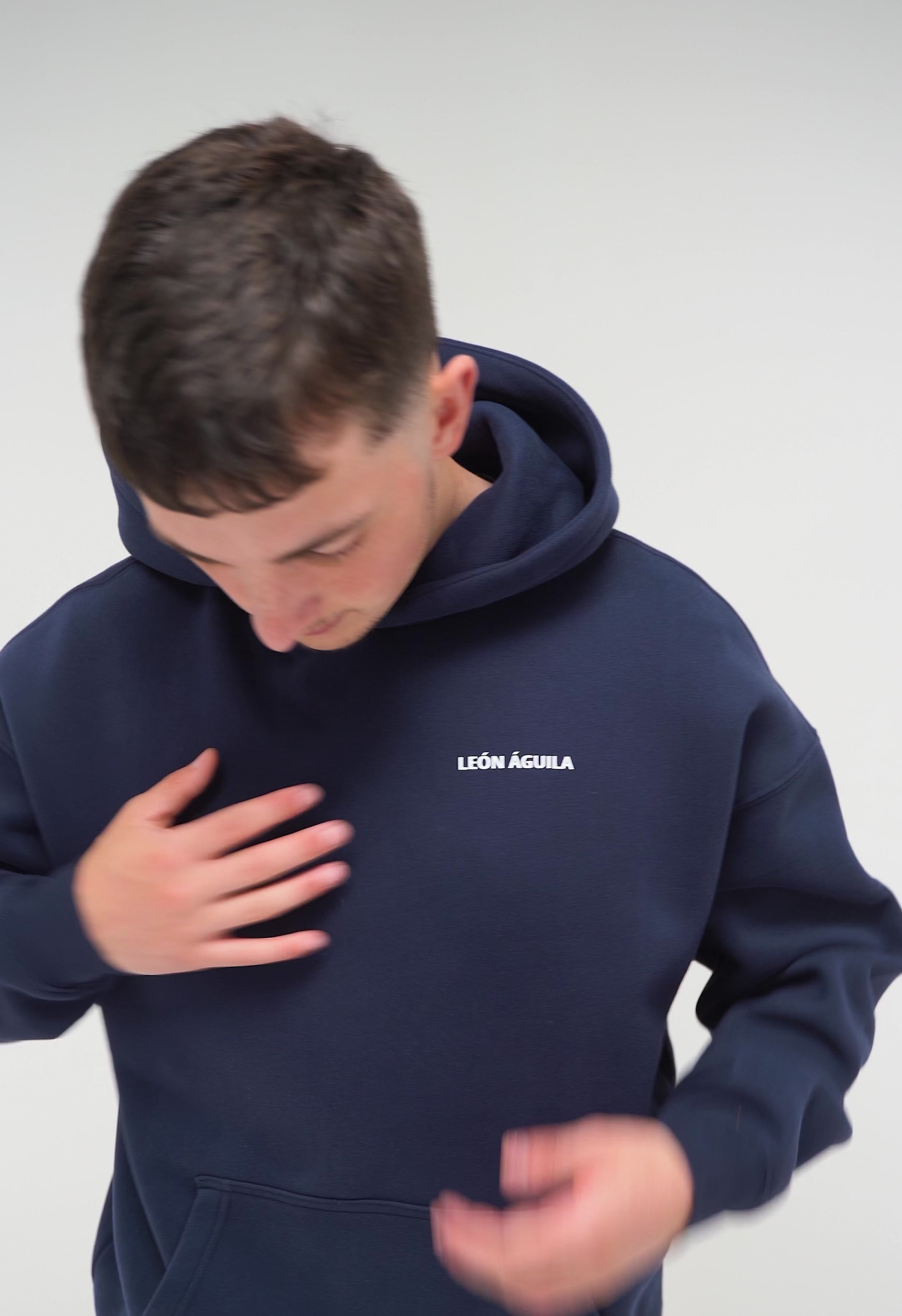 Experience luxury with the LEÓN ÁGUILA Navy Oversized Signature Hoodie. Its velvet-feel touch sets it apart, offering unmatched softness and refinement. Made from premium heavyweight cotton, it delivers exceptional warmth for winter, fall, and spring. The oversized fit ensures effortless style and comfort. The LEÓN ÁGUILA Signature Hoodie redefines what luxury should feel like.