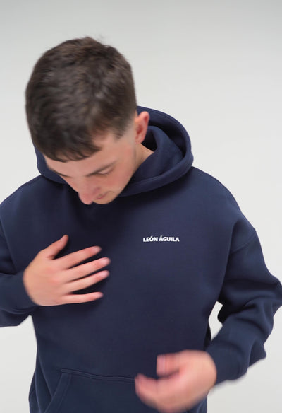 LEÓN ÁGUILA Navy Oversized Signature Hoodie